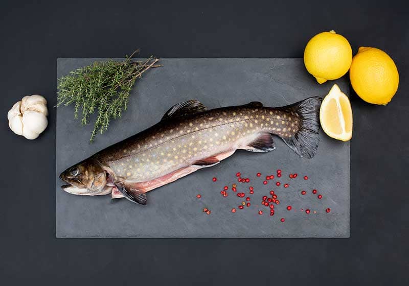 Particularités : Originaire d’Amérique du Nord, l’omble se distingue par son élégante robe colorée, qui varie du vert au bleu, ponctuée de taches jaunes et rouges.